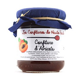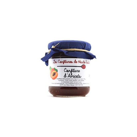 Confiture d'abricot artisanale du Pays-Basque cuite au chaudron en cuivre, à l'ancienne, préparée avec 50 gr. de fruits pour 100 gr.